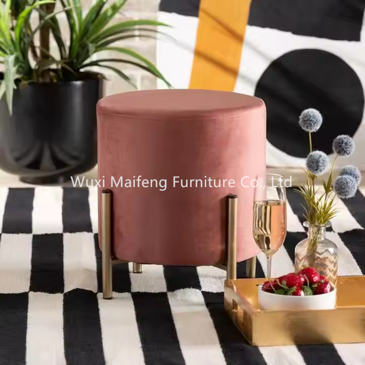 DJOCT-025 Wooden Velvet Fabric Stool