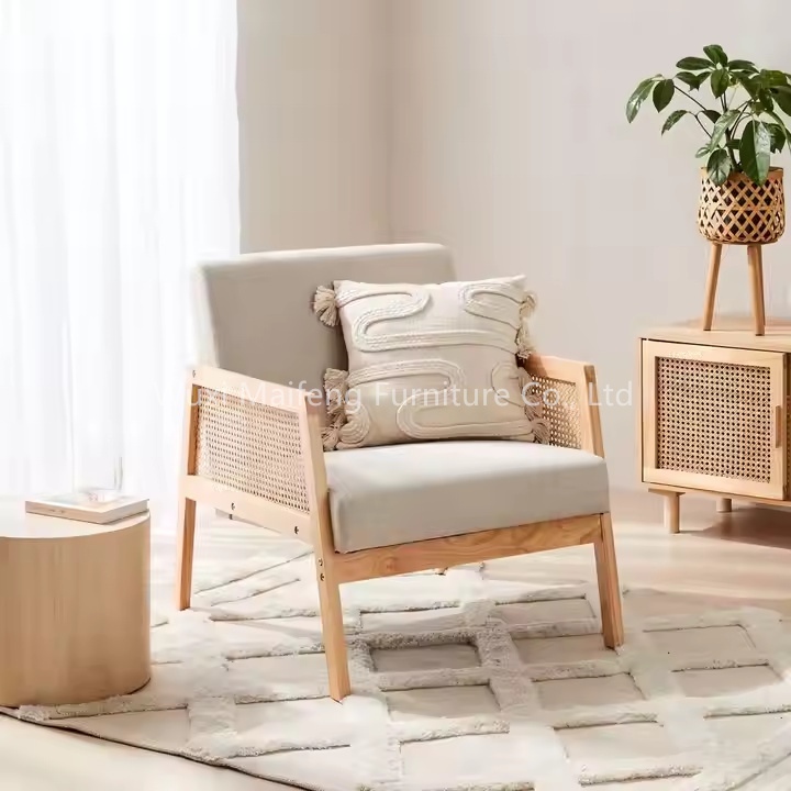 DJOCT-041 Wooden Rattan Velvet Fabric Sofa Chair