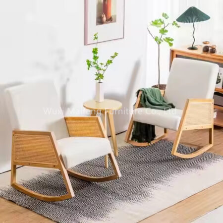 DJOCT-004 Wooden Velvet Rattan Lounge Living Room Chair